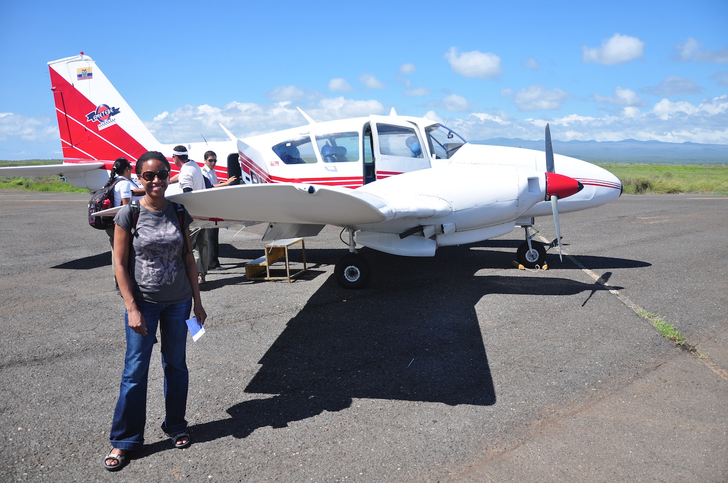 You and Yan look like a bare fit in that puddle jumper, in fact I’m surprised your had room for other brave souls to take the flight with you. Must have been interesting.