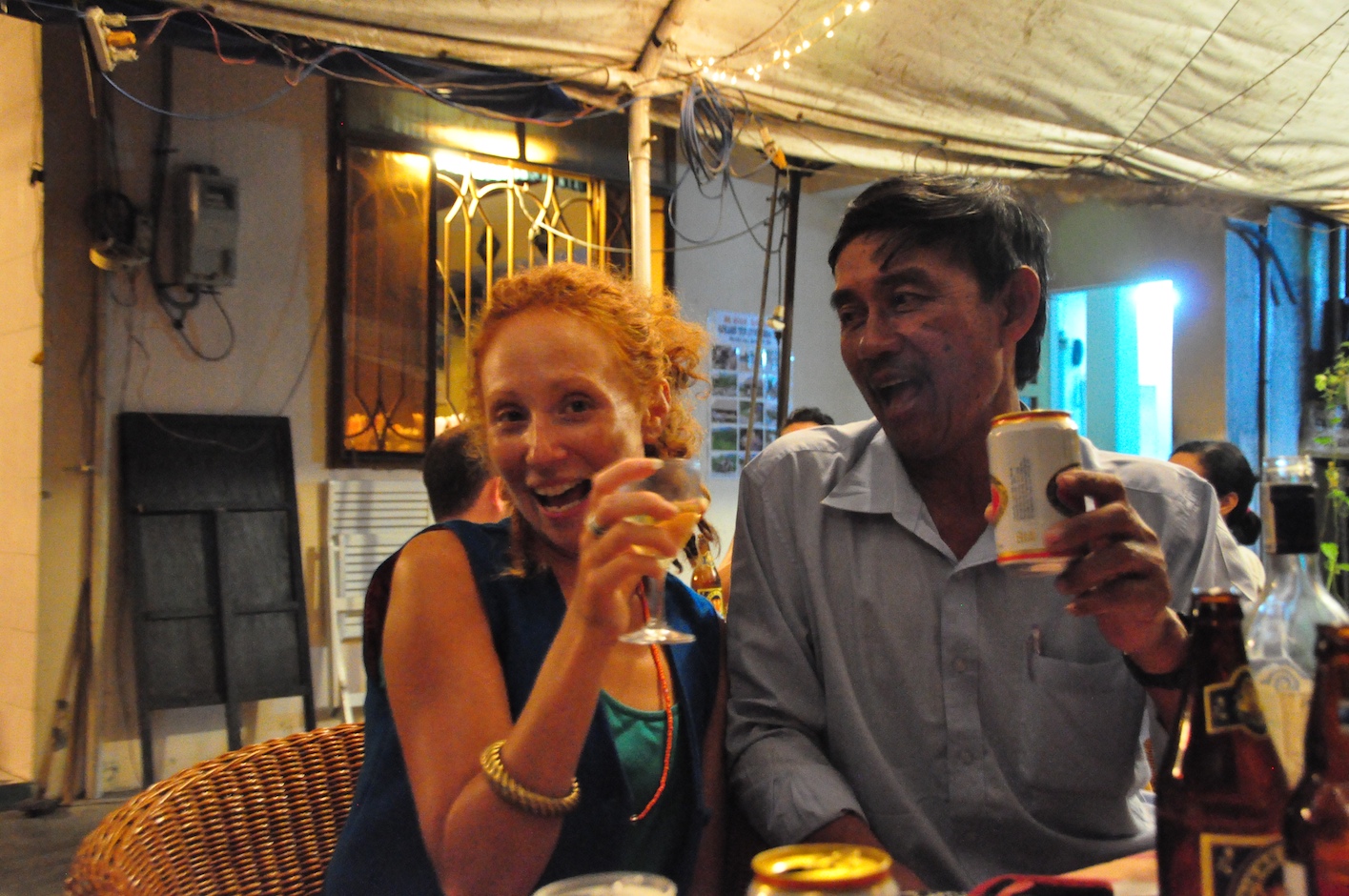 One common characteristic throughout Vietnam is that you feel like a walking ATM. You can see the locals’ eyes spin their slot machine wheels and land on dollar signs or double cherries or sevens, ding ding ding ding ding as soon as you roll into town. And when you roll into Hoi An all bets are placed on fitting you with a custom tailored three piece suit or silk ao dai. But I’m not a cramblin’ man (or woman) and went for the sure bet with a flyer and a desire for a little fun. Fortunately, our friend Laura had already doubled down on plans for our reunion since our Burmese days and so Marilyn and Elvis would have to wait.